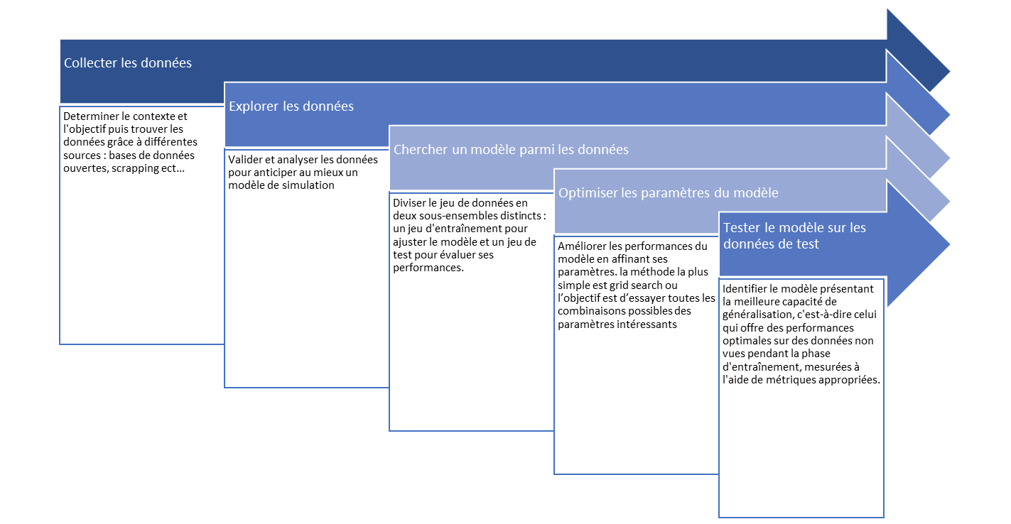 Chaque étape est importante pour construire le meilleur modèle, la préparation des données, le nettoyage, la qualité des données ainsi que le choix du modèle.
